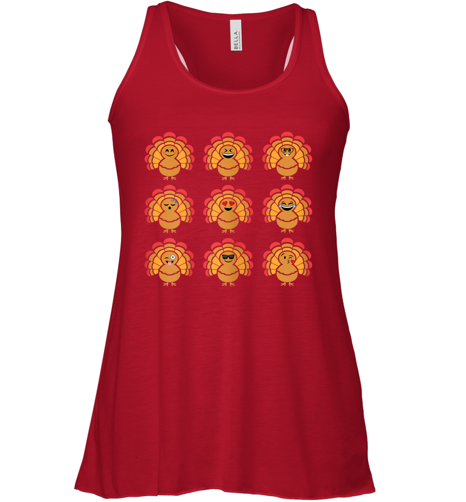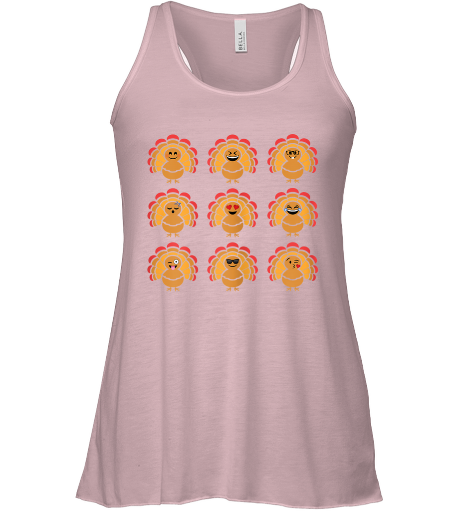 Trending Turkey Face Emoij Characters Collage Funny Thanksgiving Racerback Tank